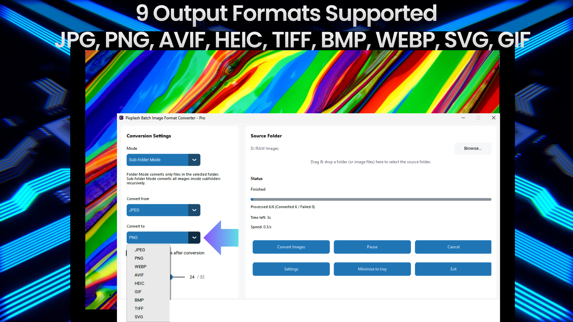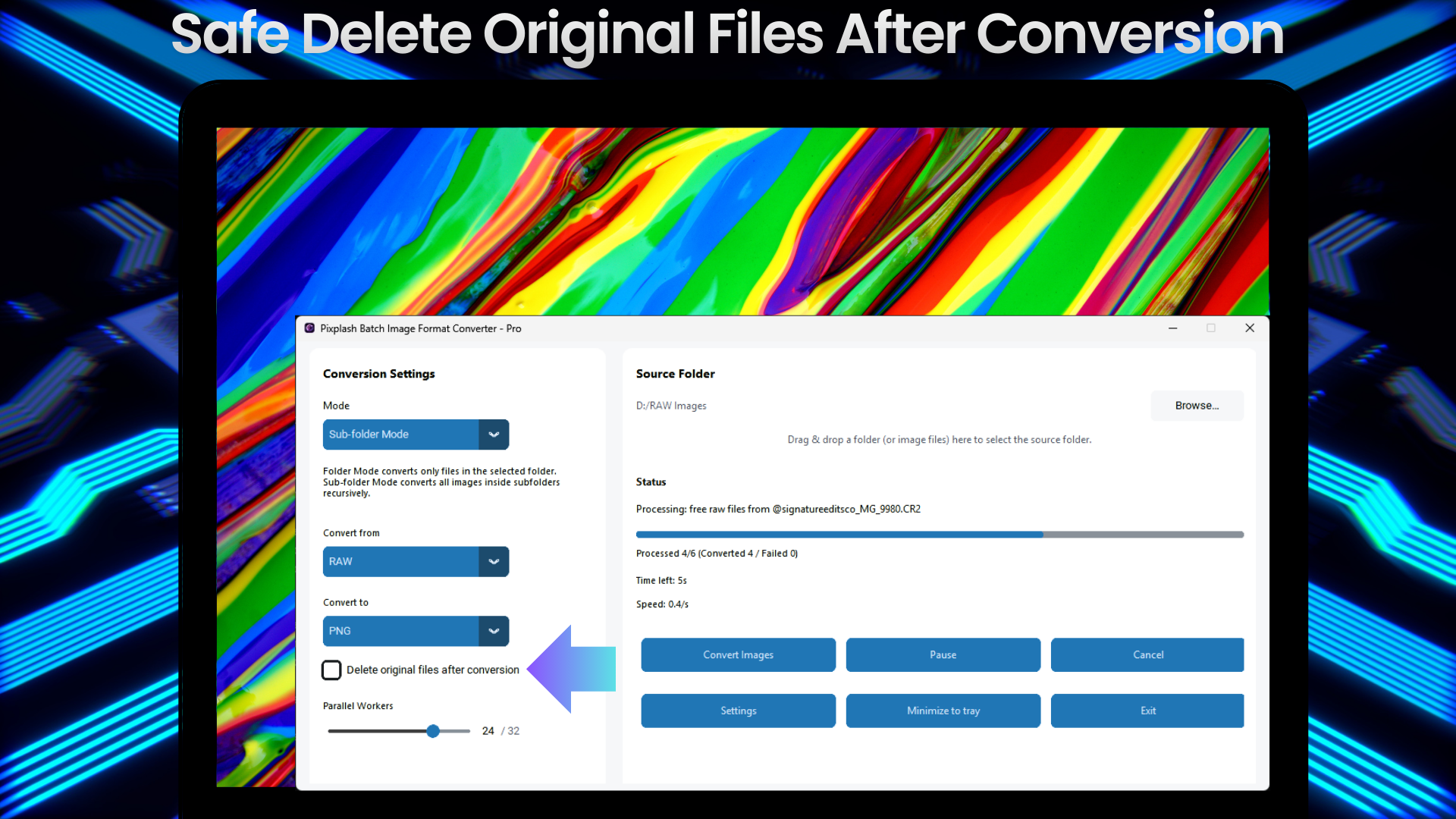✔️ Delete Original Files after conversion (Optional - Sends Converted Original Images to Recycle Bin)