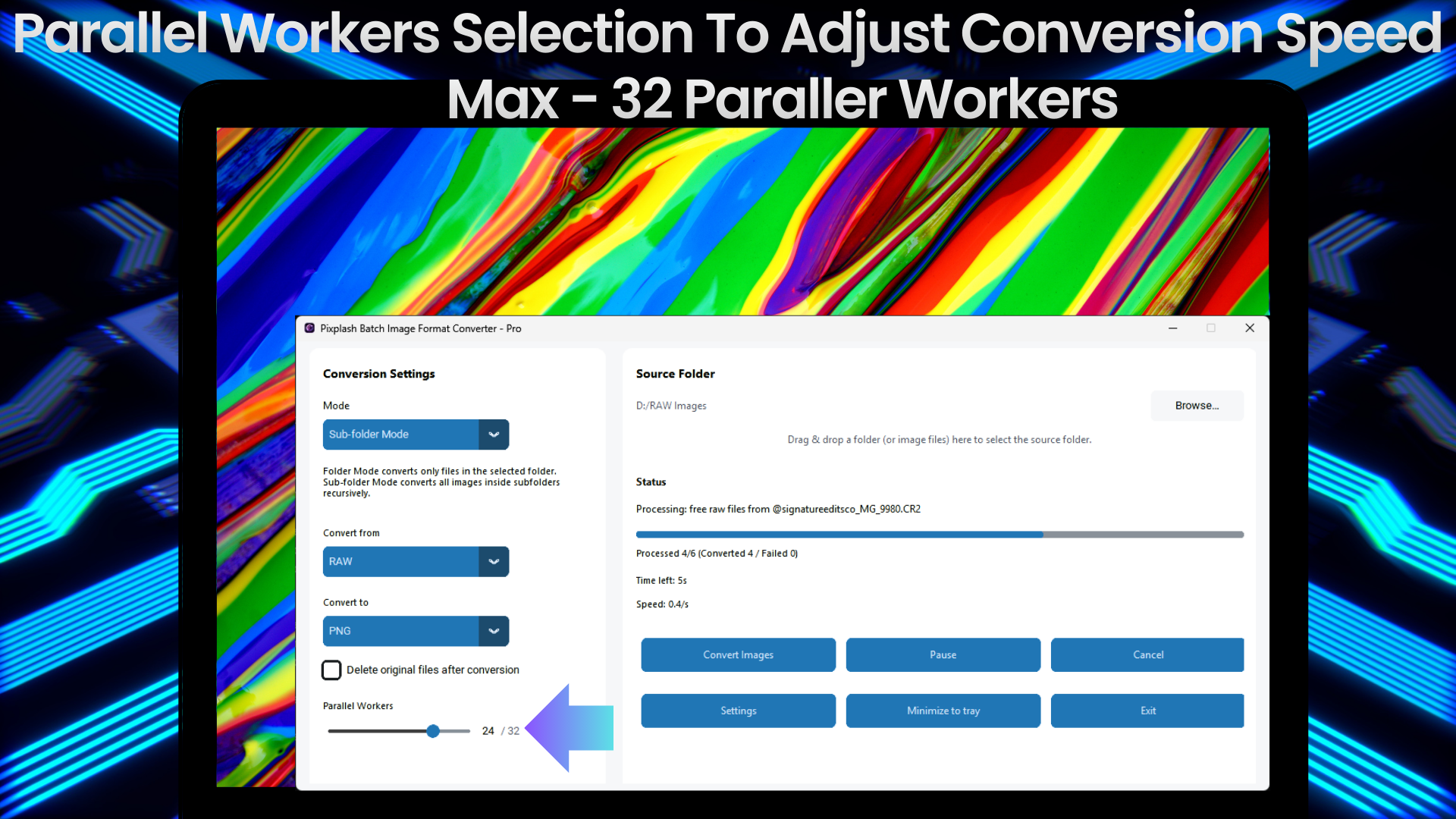 Step 5: Adjust speed using the slider (Max: 32 Workers)